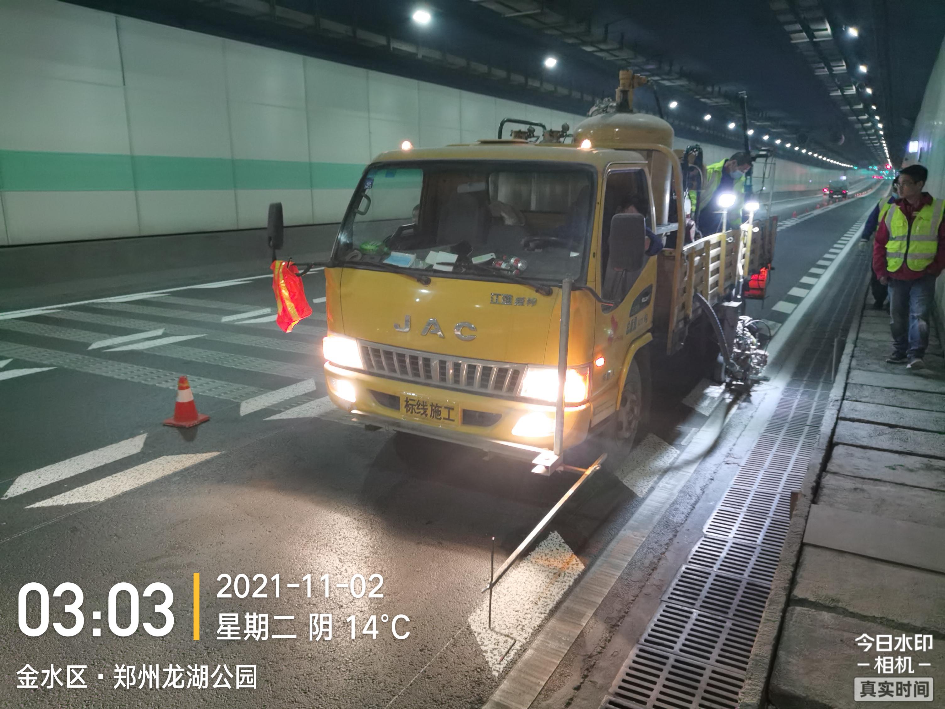 • 雙組份點(diǎn)涂標(biāo)線施工現(xiàn)場,效率剛剛的